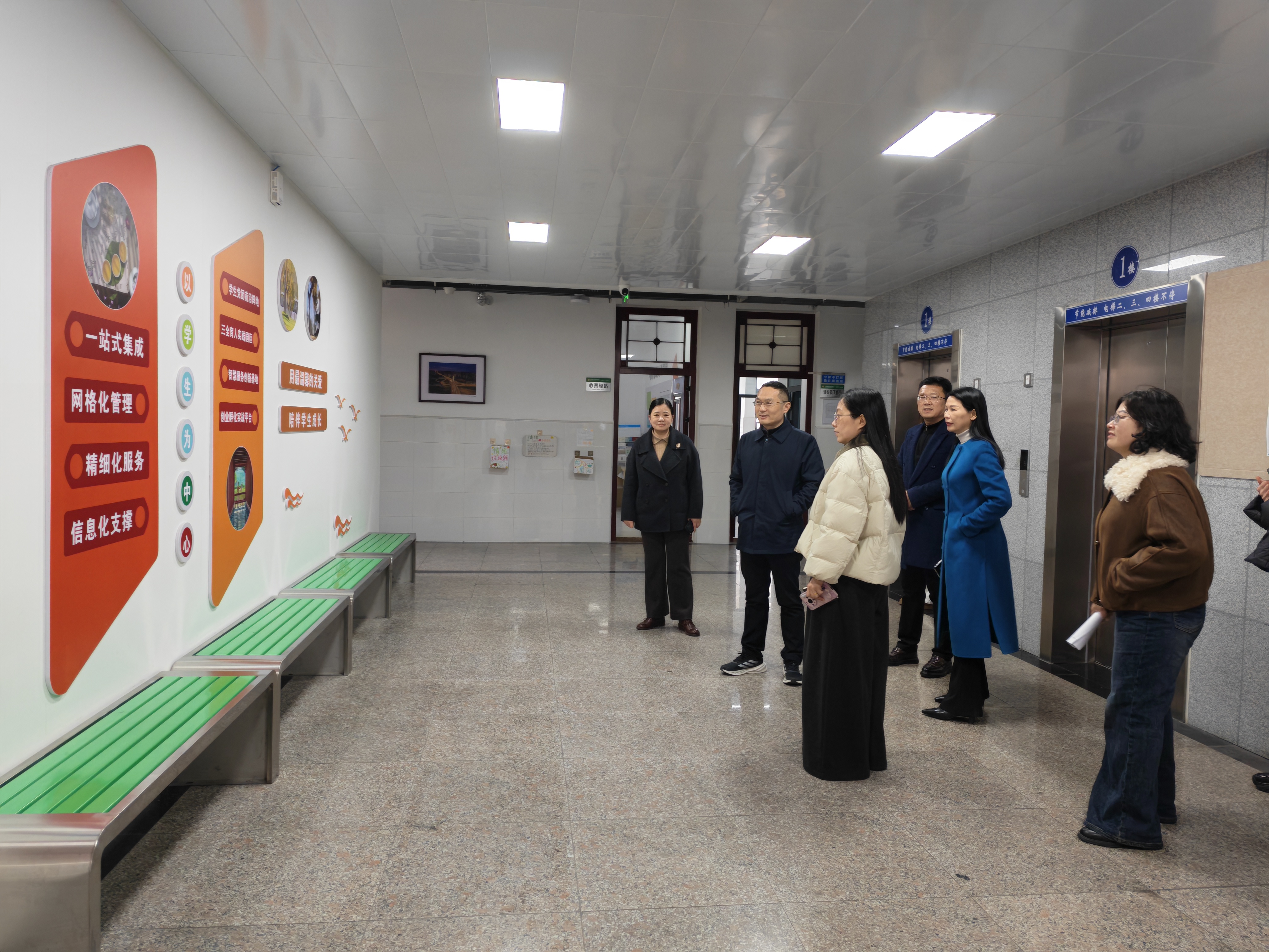 为深化“一站式”学生社区建设,提升学生服务育人实效,3月9日下午,校长李森带队前往学校“一站式”学生社区开展调研工作。校党委委员、副校长严正香以及相关部门负责人陪同调研。